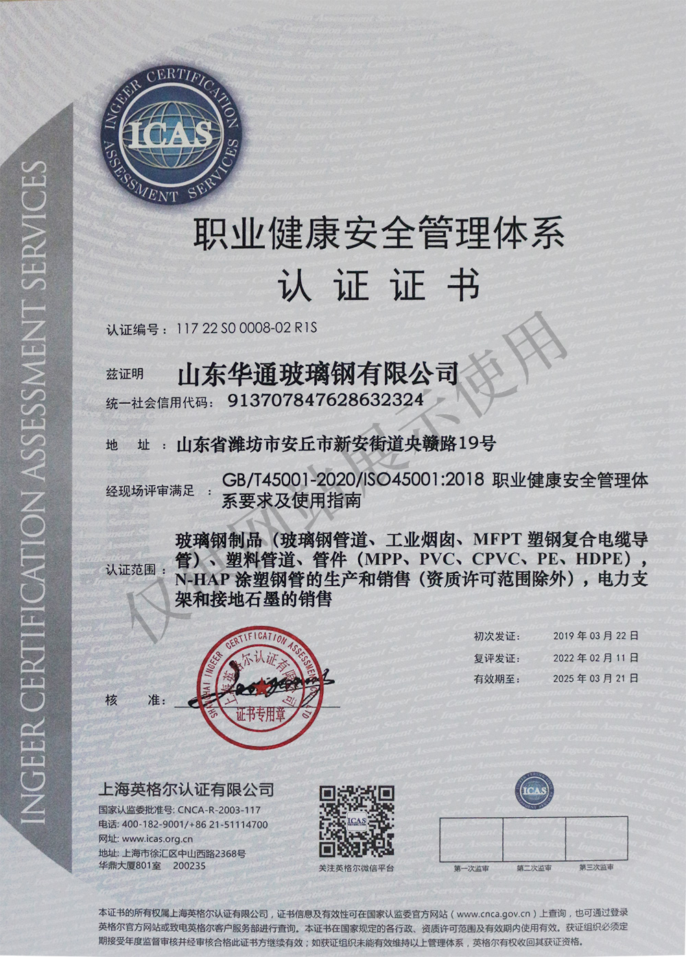 ISO45001认证证书